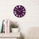 Faux Gold Metallic Minimal Roman Numbers Burgundy Large Clock