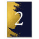 An elegant and classy faux gold brushstrokes design with navy blue background. This simple colour combination creates a sophisticated, trendy and chic style. Elegant wedding table number card design with modern elements. The simple setup of the typography gives it a distinct style. Matching wedding invitations and other stationery items are also available. Customise the number and purchase each tables number individually according to how many table numbers you need.