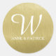 faux gold (ochre) monogram & names, wedding classic round sticker