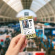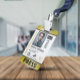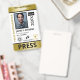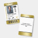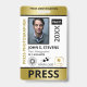 Vertical press ID with faux gold and black as accent colours. Add photo, logo, name, title, ID number and more against a white background.