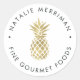 Label your correspondence or products with these chic stickers that match our Pineapple branding suite. Crisp white stickers feature a faux gold foil pineapple illustration in the centre, with two text fields curving around the outside, in modern off-black lettering.