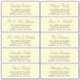 Personalised wedding guest name and address mailing labels with an elegant chic faux gold calligraphy script over a yellow cream background.