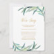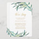 This simple sage green and white botanical wedding postponement notice is a simple and sweet way to let invited guests know that the ceremony has been postponed due to unforeseen events. This trendy design features beautiful "we're sorry" calligraphy script in faux gold and pretty watercolor leaves.