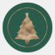 Faux Golden Foil Christmas Tree Shape On Green Classic Round Sticker