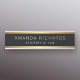 Door sign with your name and title on a black background with printed golden gradient borders top and bottom.