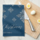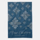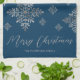 Faux Grey Foil Snowflakes On Blue (Not Real Foil) Tea Towel