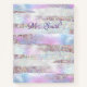 The background features pearl white, pink and blue colour brush strokes over iridescent coloured holographic fake glitter.