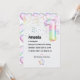 Iridescent themed number balloon first birthday party invitation. Please note that the iridescent effect is simulated.