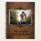 Plan your wedding with this rustic, brown, faux leather cover with photo template on front with custom text too. Black, elegant filigree scrolls will accent your photo.