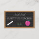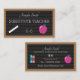 Faux letter board designer business cards with a pink dotted apple and 3 books . They're perfect for teachers , substitute teachers , teacher aides , tutors , educators , etc . They're very easy to personalise . Simply fill out the temple with your own information .
