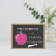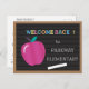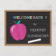 Here is a special faux letter board postcard to welcome back your students to on campus learning this year . The front has colourful letters and a pink apple with polka dots and a chalk and a place to add your school name . On the back modify the text to your own need or replace it with your own altogether.