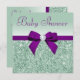 Faux Mint Sequins Purple Bow Baby Shower Invitation