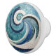 Faux Mosaic Aqua Blue Swirling Ocean Sea Wave Ceramic Knob