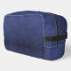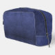 a faux navy blue leather toiletry bag.