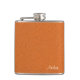 The flask itself is fine. It’s a cheap flask, obviously bought in bulk, however am prepared to overlook that. Given that it is a personalized item, I would have liked to have seen gift boxing instead of the generic packaging. Terrible printing, and/or quality. It’s a cheap, tacky vinyl. It is not cut straight and is also applied in a way that it is overhanging the bottom, causing the glue to catch on items and it will eventually roll and tear, damaging the wrap.