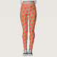 A pair of chic Leggings, with a country-style faux-patchwork pattern of hexagons of ditsy Orange Floral, Orange, Red and Yellow Stripes and white Polka Dots on a Red background. Part of the Posh & Painterly "Orange Fizz" collection. You can customise these Leggings by changing the scale of the pattern tile, or rotating it, for a very different look.