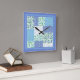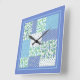 Faux Patchwork Snowdrops Blue Green and Polkas Square Wall Clock