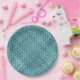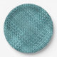 Faux Rattan Teal Turquoise Zigzag Weave Pattern Paper Plate