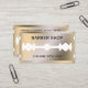 Creative standout style inspired by barber business. Razor shave looks in faux shiny metal texture.