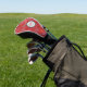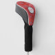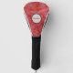 This golf head cover is eye-catching, with grey mottling on a bright red background. Personalise with your name in a grey circle with a black border.