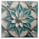 Faux Relief Flower in Turquoise Teal White & Gold Ceramic Tile