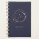Chic planner in rich midnight blue features a faux rose gold abstract element encircling your single initial monogram. Personalise with a line of custom text beneath in modern lettering; we love it with your name or business name and the year. NOTE: THERE IS NO GOLD FOIL ON THIS PRODUCT. The rose gold look is produced using subtle colour variations that mimic the look of foil.