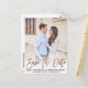 Send our portrait picture wedding save the date postcards with a faux rose gold foil script to let your guests know to block off your wedding date. You can choose from one of the available predesigned colour schemes, or you can select one of the flat coloured designs (with black text, for example) and then be able to change the colours to whatever custom colour you would like.  Just click on the "Edit Design" button, click on the text you would like changed, and then add your custom colours. Be sure to check out our large selection of photo save the date cards, postcards, and magnets by browsing our Picture Save the Date collection!
