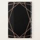 This elegant and trendy wedding planner features modern, faux rose gold look typography and a geometric design on a black background.