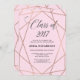 This stylish Class of 2017 graduation party invitation features a modern, faux rose gold geometric design on a trendy blush pink background.