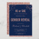 Amaze your guests with this elegant gender reveal invite featuring modern typography. Simply add your event details on this easy-to-use template to make it a one-of-a-kind invitation. Flip the card over to reveal a beautiful faux rose gold glitter texture on the back of the card.