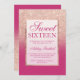 Faux rose gold glitter ombre pink magenta Sweet 16 Invitation
