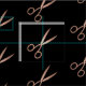 Cute hairstyling themed fabric features a pattern of faux rose gold foil scissors on a black background. Perfect for hair salons, stylists, colorists, or hairdressers.