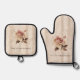 Faux Rustic Cream Pink Rose Wood Oven Mitt & Pot Holder Set