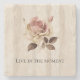 Faux Rustic Cream Pink Rose Wood Stone Coaster