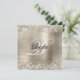 Faux Shiny Platinum Glitter Brushed Foil Monogram Invitation