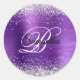 Faux Shiny Silver Glitter Amethyst Foil Monogram Classic Round Sticker