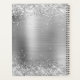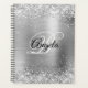 Faux Shiny Silver Glitter Brushed Metal Monogram Planner