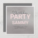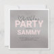 This square birthday party invitation features your name set in a bold modern font with the word Birthday and a heart in handwritten script typography and party in blush pink over a faux silver background. The invite card reverses to a complimentary charcoal grey background. A cute choice for your girl's little sweetheart First Birthday party all the way up to sweet 16. To see more of this Valentine's Day invitation suite visit DoTellABelle on Zazzle.