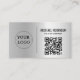 Faux Silver Business Logo QR Code Professional Business Card. Easy to customise logo, QR code, employee name, company name and contact details. Get yours today!