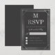 Chic faux silver foil art deco wedding RSVP cards. The elegant wedding RSVP cards feature a faux silver art deco border, dark grey background, and wedding monogram. Change the font style by clicking the "Customise It" button.