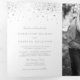 Invite family and friends with this elegant trifold wedding invitation. It features faux silver foil confetti dots, elegant script and modern typography. Personalise by adding names, photo and other details. This silver and white wedding invitation is perfect for any wedding theme and season.