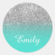 Faux Silver Glitter and Classic Turquoise Gradient Round Sticker