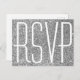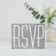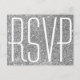RSVP in long elegant, trendy font against a bokeh photo of grey or silver glitter for your wedding.