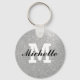 Faux silver glitter monogram key chain with glittery glimmers and shiny sparkles. Personalizable name initial letter. Cute girly Birthday girl gift idea or unique wedding favor for bridesmaids, guests etc. Glamorous monogrammed design with silvery background texture.