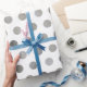 Wrap your gifts in style with this faux silver glitter & white medium sized polka dots on wrapping paper. Great for Christmas and party gifts and baby showers.
