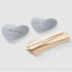 A simple but elegant heart shaped wedding program fan. The titles and the names (and the initials) of the bride and groom are written in an elegant calligraphic script, the rest in caps. The background is faux silver (A metallic grey), the text is dark grey. On the back, it has on the left side the wedding ceremony program and, on the right side, the wedding party (with 2 different columns for the bride team and groom team). and under them a short Thank you message.
