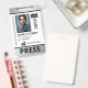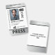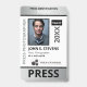 Vertical press ID with faux silver and black as accent colours. Add photo, logo, name, title, ID number and more against a white background.