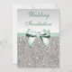 Faux Silver Sequins Diamonds Mint Bow Wedding Invitation