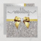 Faux Silver Sequins Gold Bow Wedding Invitation