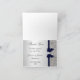 Faux Silver Sequins Navy Diamond Bow Thank You Card